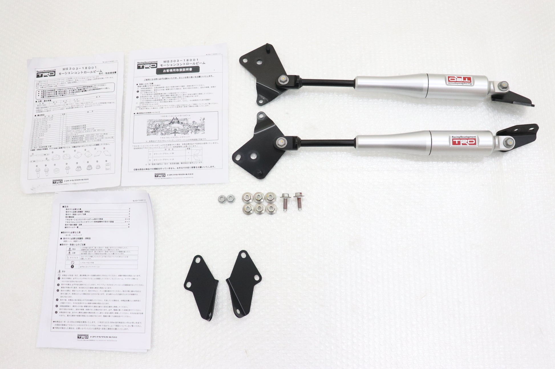 Comes with the brackets to install TRD front tower bar over the old bar.